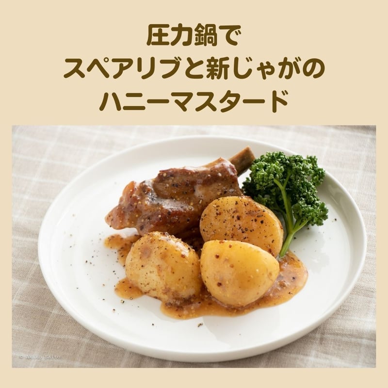 電気圧力鍋でほったらかし 加圧15分でとろける!絶品ハニーマスタードスペアリブ。