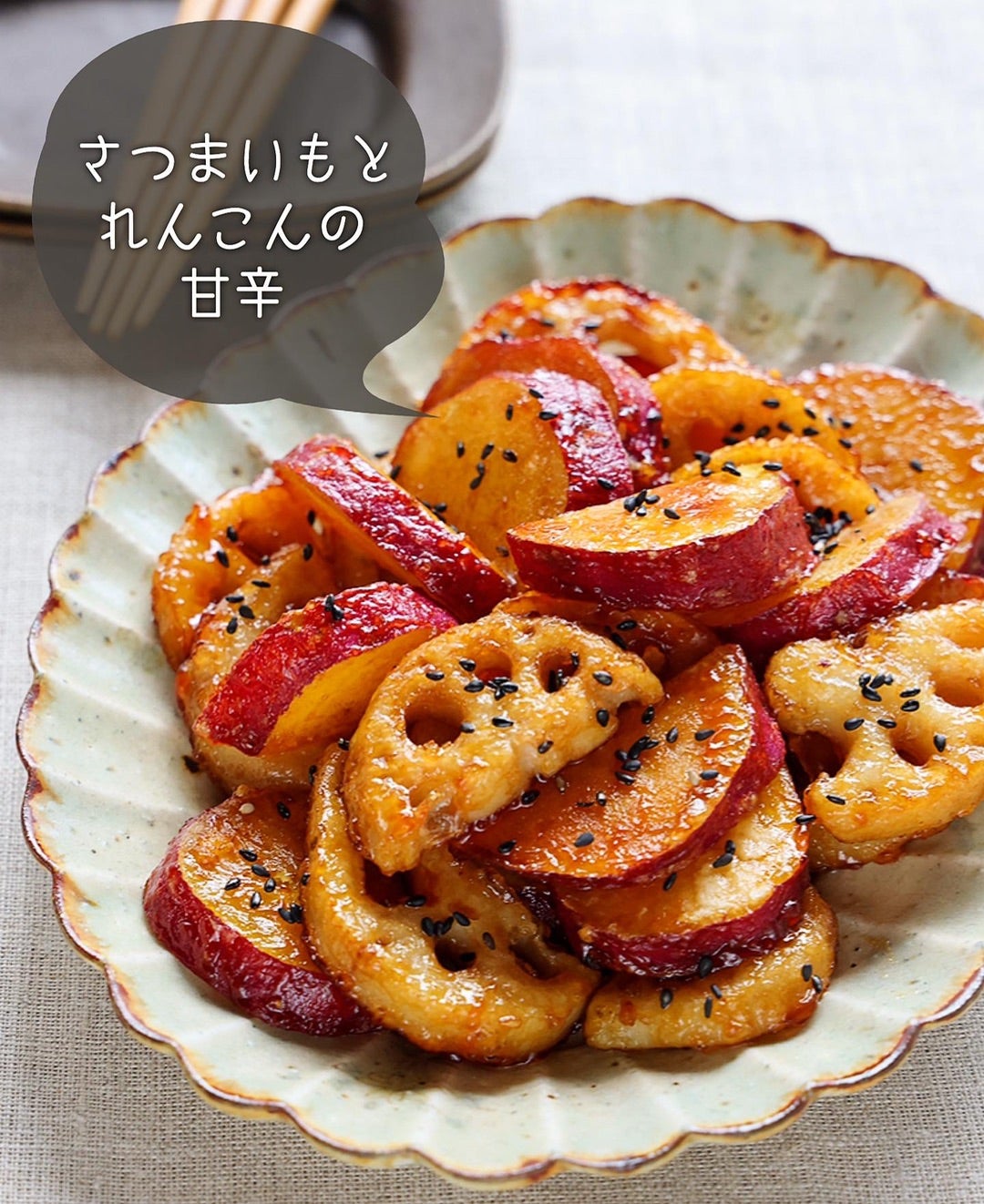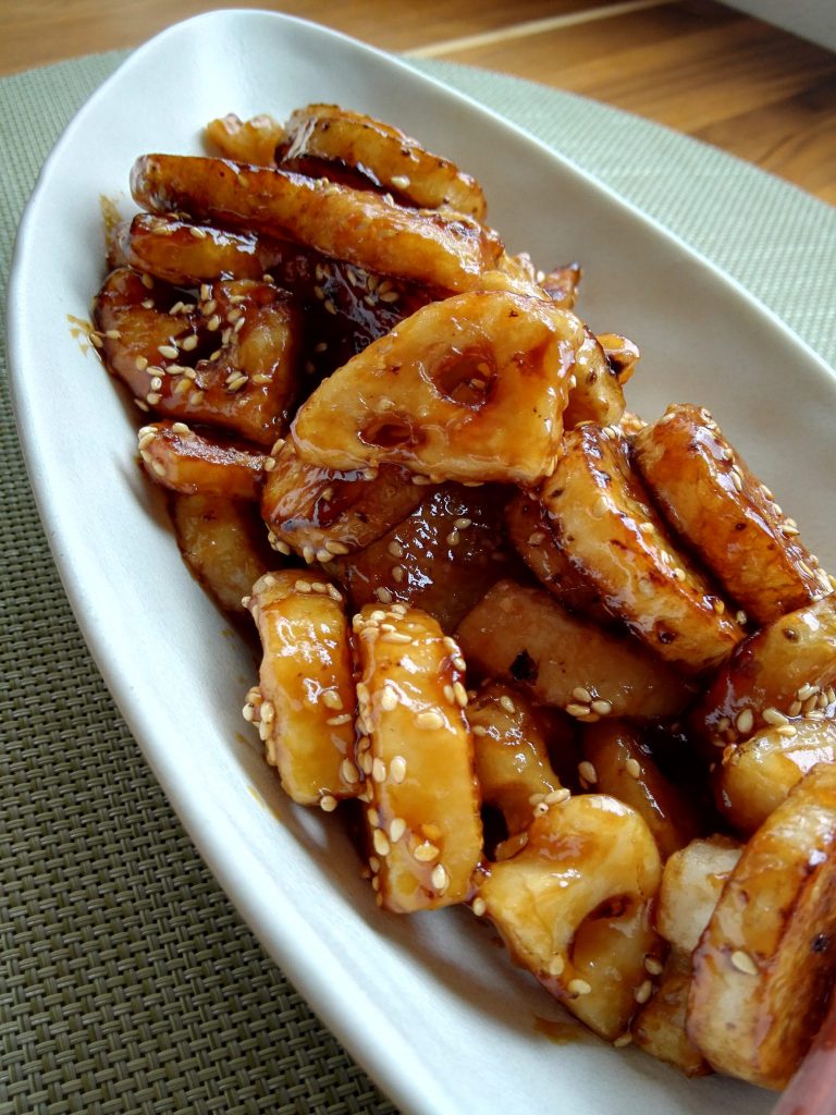 てりやき味 さつまいもとれんこんの甘辛炒めレシピ・作り方Tasty。