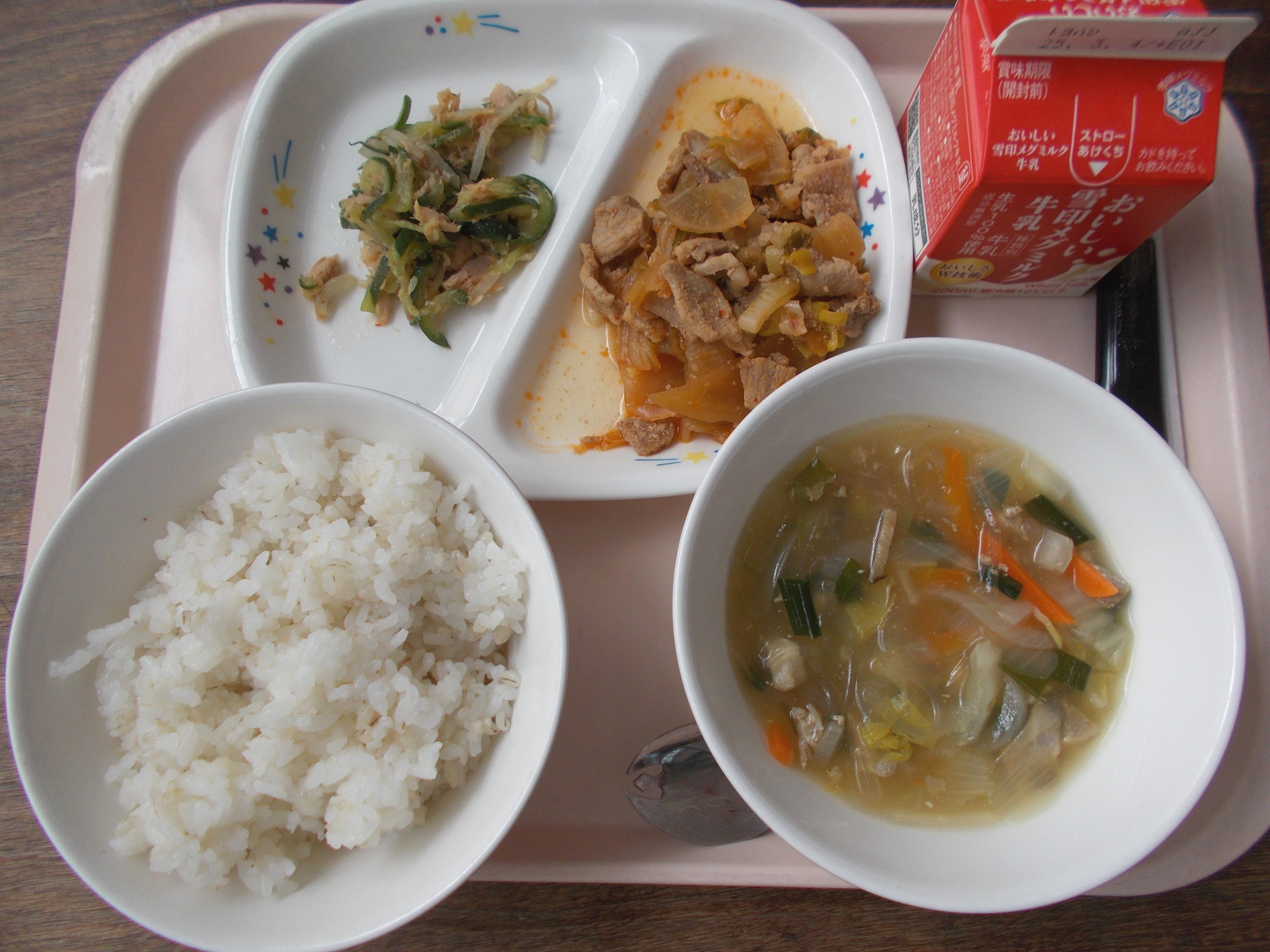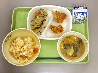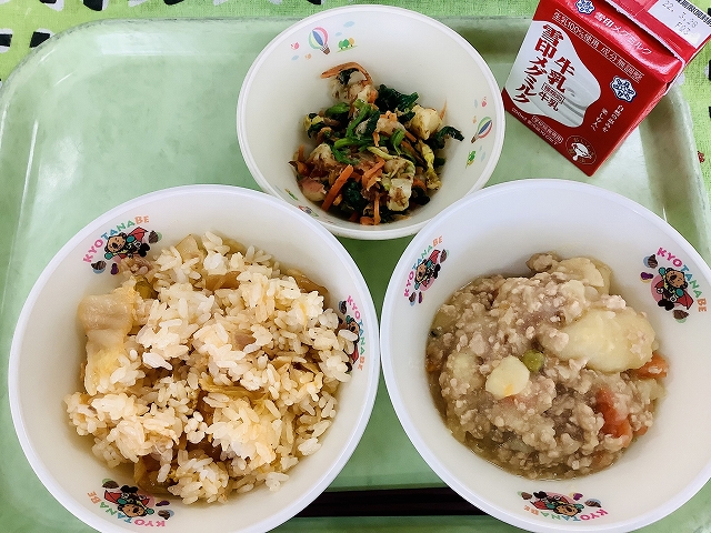 玉村町学校給食センター給食日記キムタクごはんの具。
