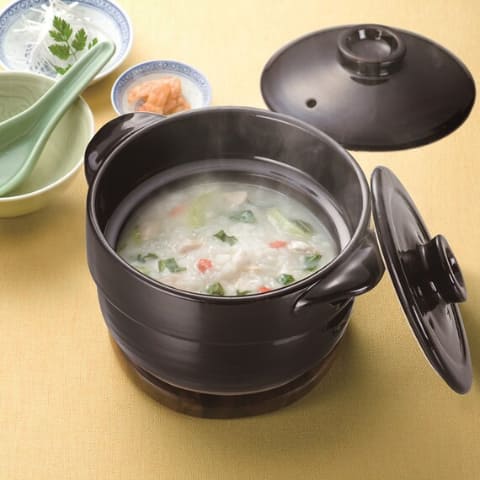 貝柱と海老のお粥おいしいレシピ「黒樂シリーズ」土鍋で炊飯 かまどご飯釜で炊くお米は最高です!超耐熱セラミック土鍋。