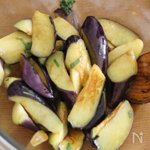 フライパンで炒めて作る✨揚げなすのにんにく醤油和え。
