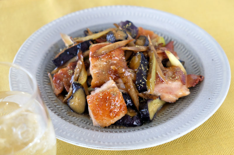ウマ辛スパイスおつまみレシピ③ 鶏肉・なす・ごぼうの山椒焼き。