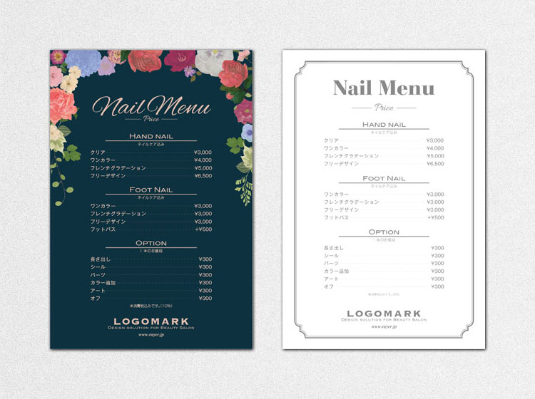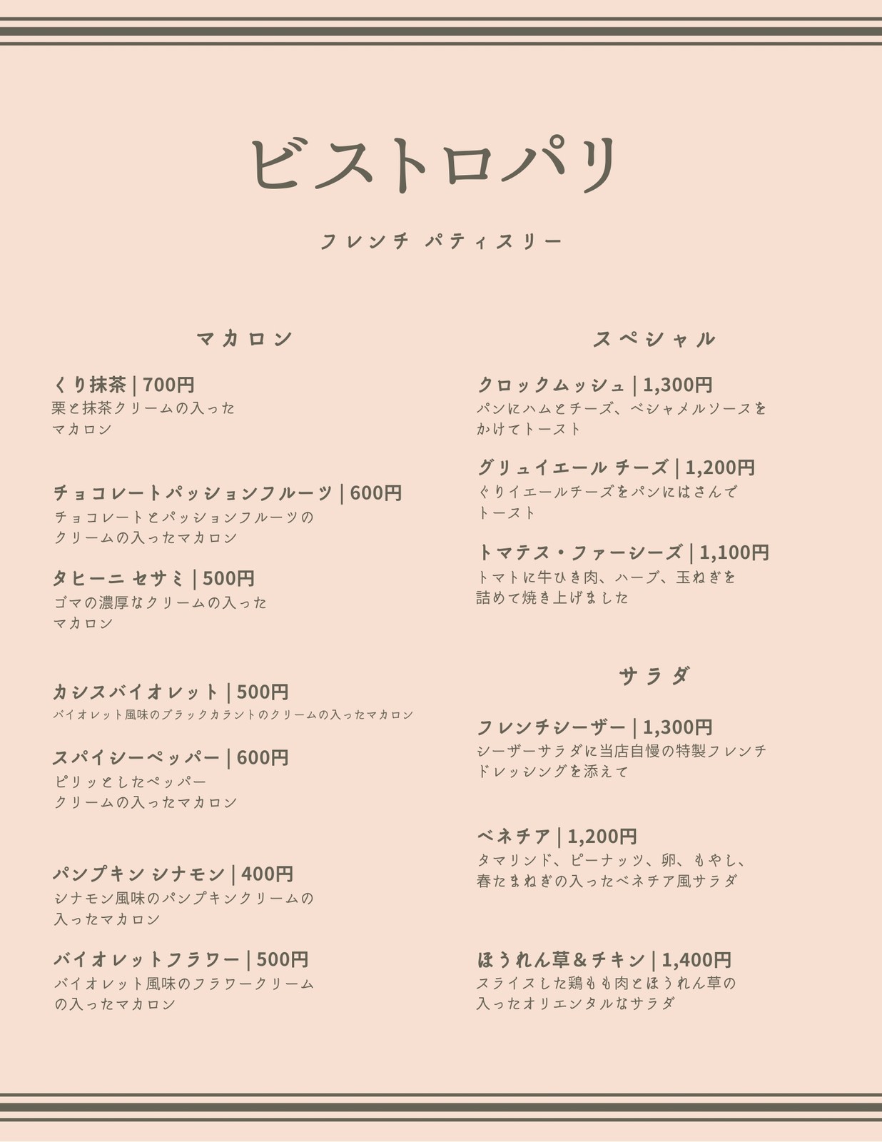 メニュー表 おしゃれ可愛いメニュー表&料金表&価格表作成。
