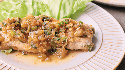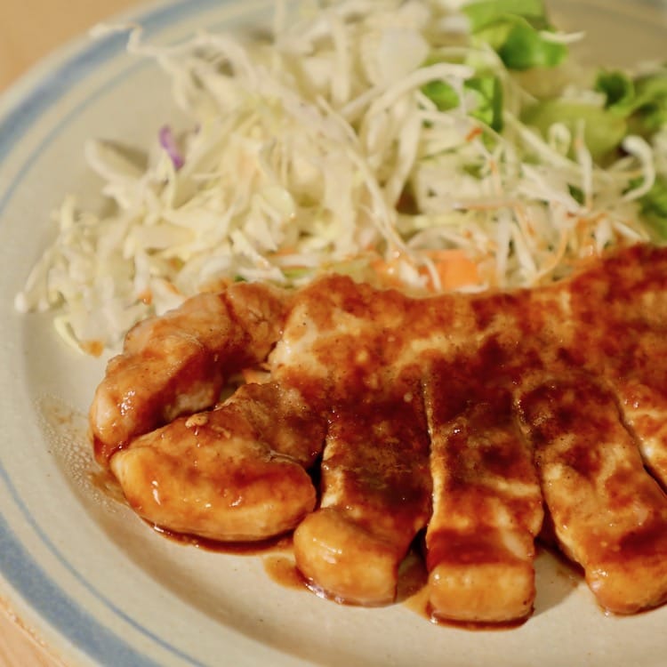 豚ロース厚切りの甘酢トンテキ 10分でご馳走1品。