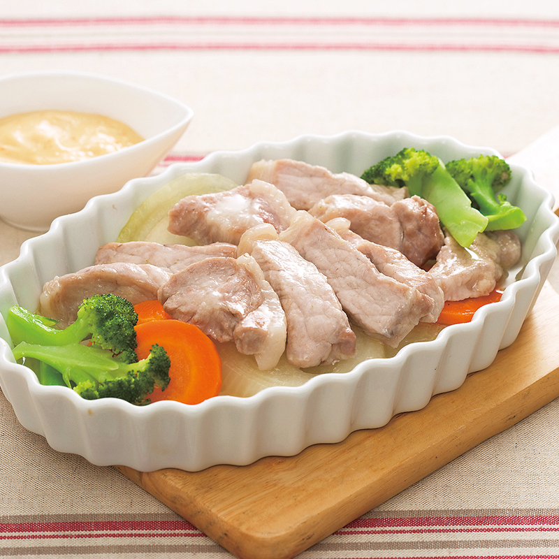 厚切り蒸し塩豚無農薬・有機野菜・無添加食材レシピ。
