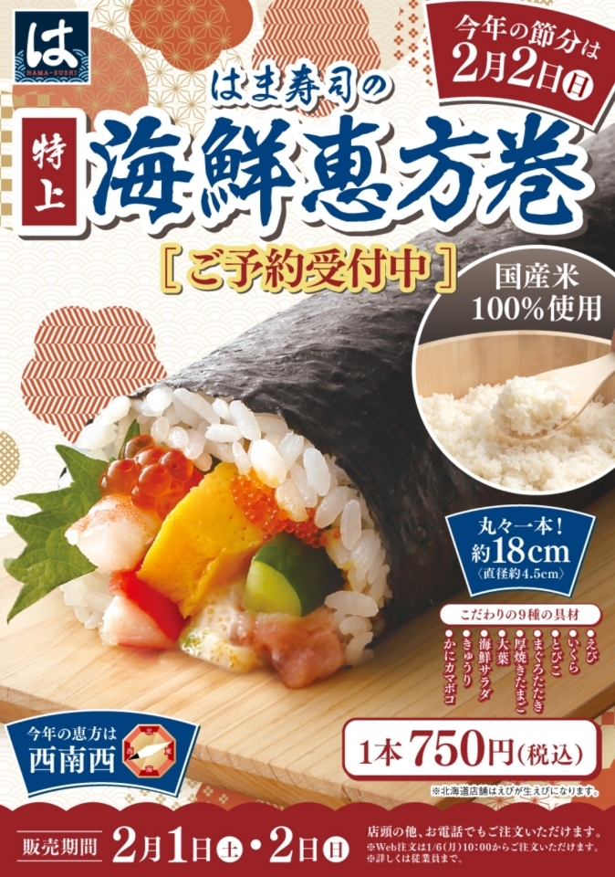 恵方巻 美味しい恵方巻で厄払いを。各店舗にて予約受付中です!築地玉寿司。