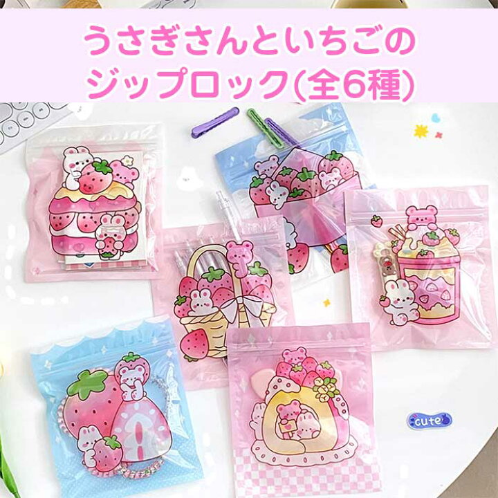 楽天市場即日出荷ジップロック チャック付き袋 Zip 袋 保存容器 ベビースナック ジップトップ 保存袋 小物入れ お菓子 うさぎ いちご 苺ポーチ 韓国 かわいい 収納 可愛い メイクポーチ 高校生 学生 持ち運び 小物入れ 持ち歩き 携帯 中学生 小学生 正方形 雑貨。