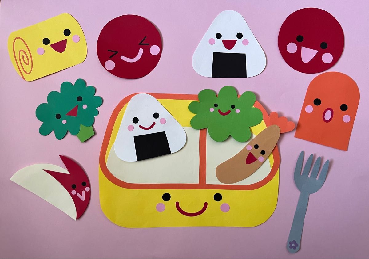 壁面アルバムクラフト60枚画用紙お弁当具材ミニ壁面保育素材。