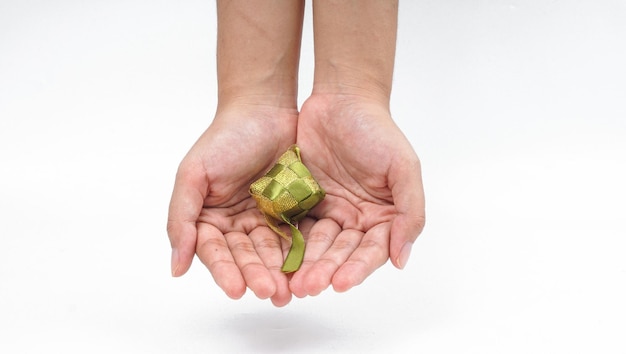 ライス ケーキまたは Ketupat はインドネシアの特産品で、イード アルフィトルで提供されますPremium写真。