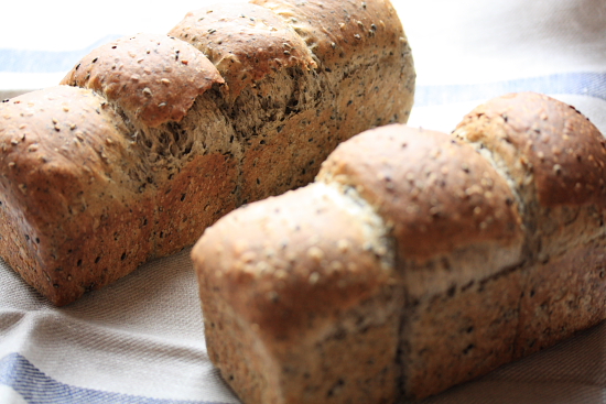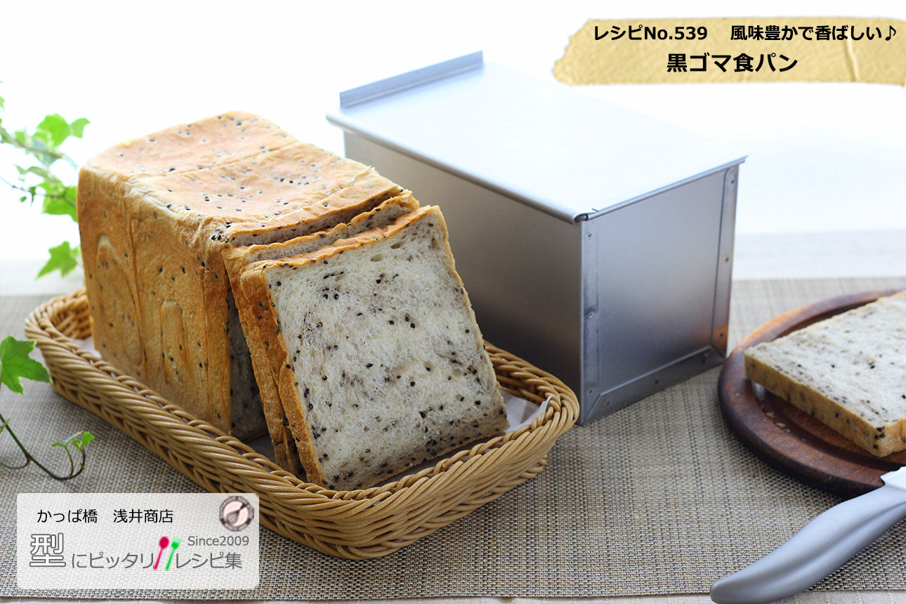 食パンレシピ~理想の食パン型1.5斤で作った、プチプチ食感が楽しい黒ゴマ食パンのレシピ かっぱ橋お菓子道具の浅井商店。