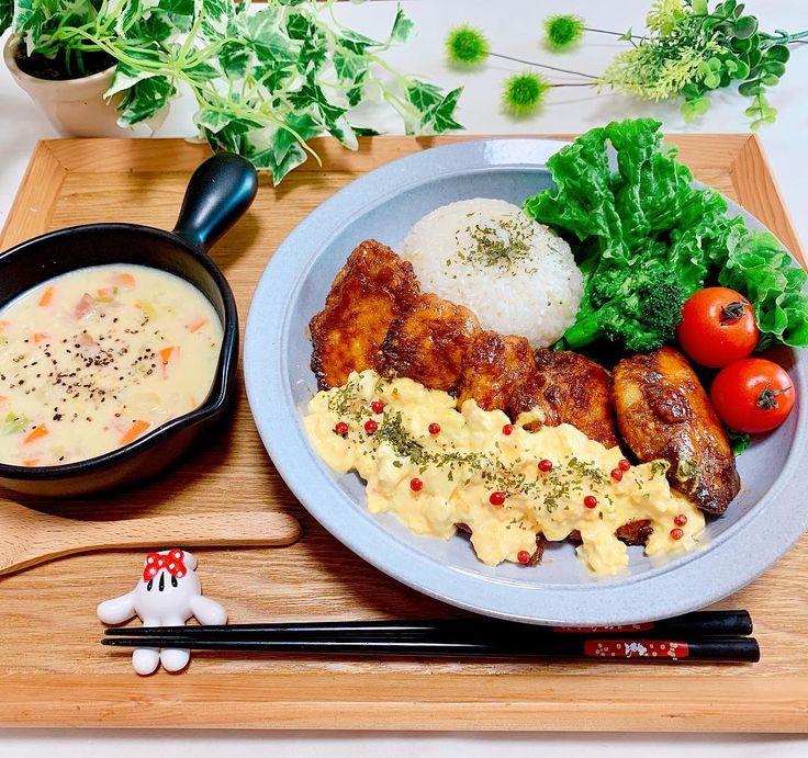 おうちごはん🍴 ✩鶏胸肉でチキン南蛮 ✩付け合わせサラダ ✩野菜のクリームスープ ✩ 今日は楽チンにワンプレートで🎶 ・ がっつりなチキン南蛮でも鶏胸肉だからと言い聞かせて☝️☝️モリモリいただきまーす🐔❤️ ・ごちそうさまでした 🙏✨ ・。