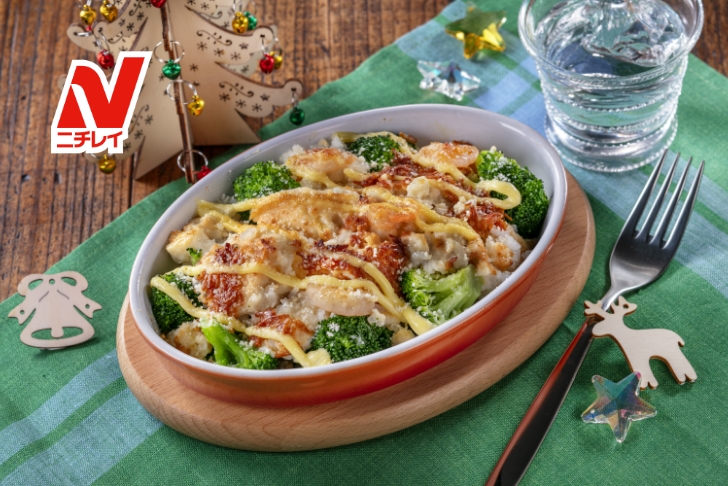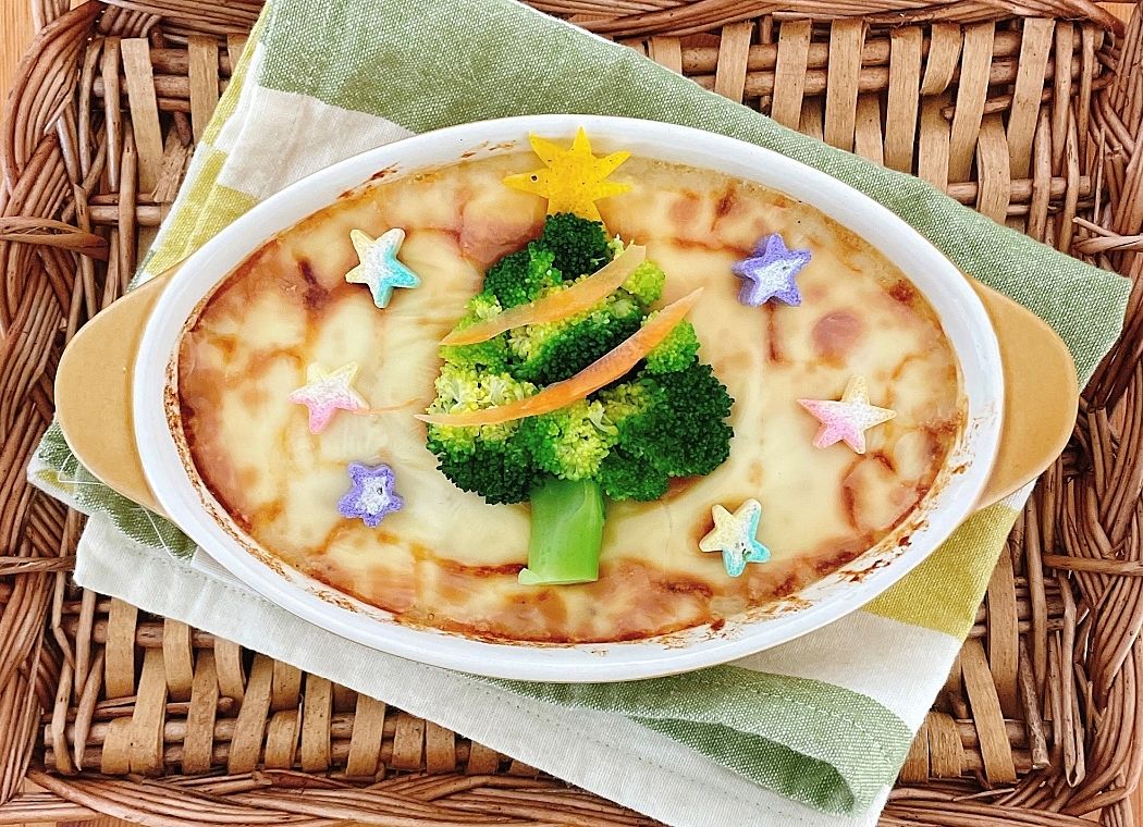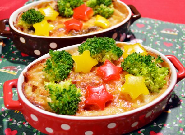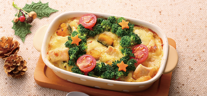 野菜たっぷりヘルシーベジグラタン クリスマスver.レシピ桜井食品。