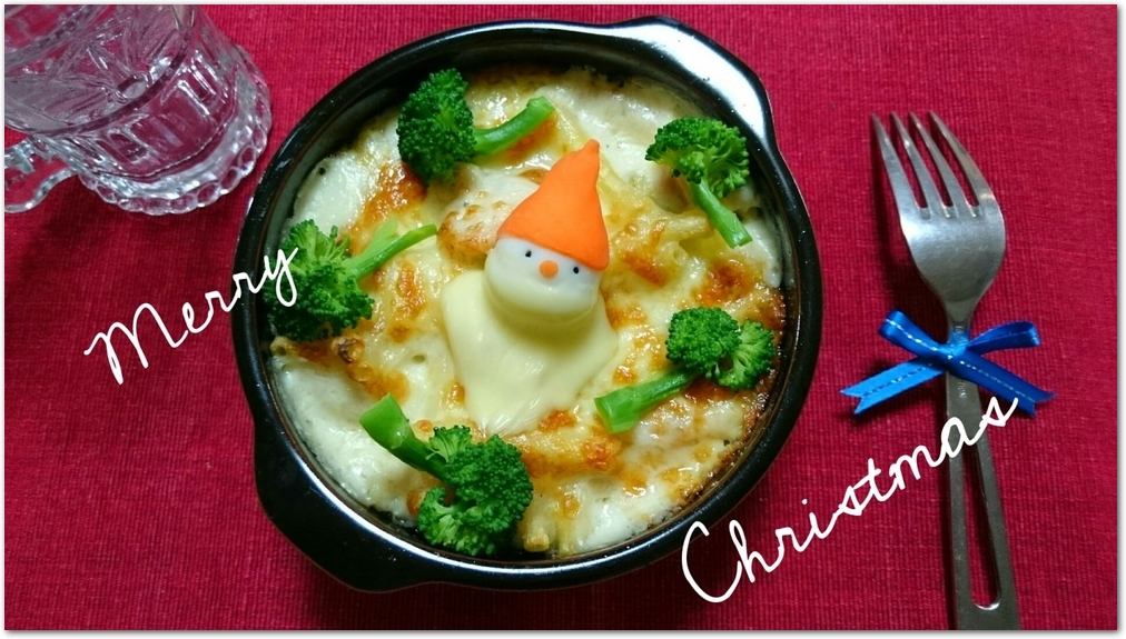 クリスマスグラタンはサンタさんをかわいくお料理!ホワイトソースなしの作り方読モバ。