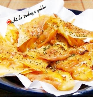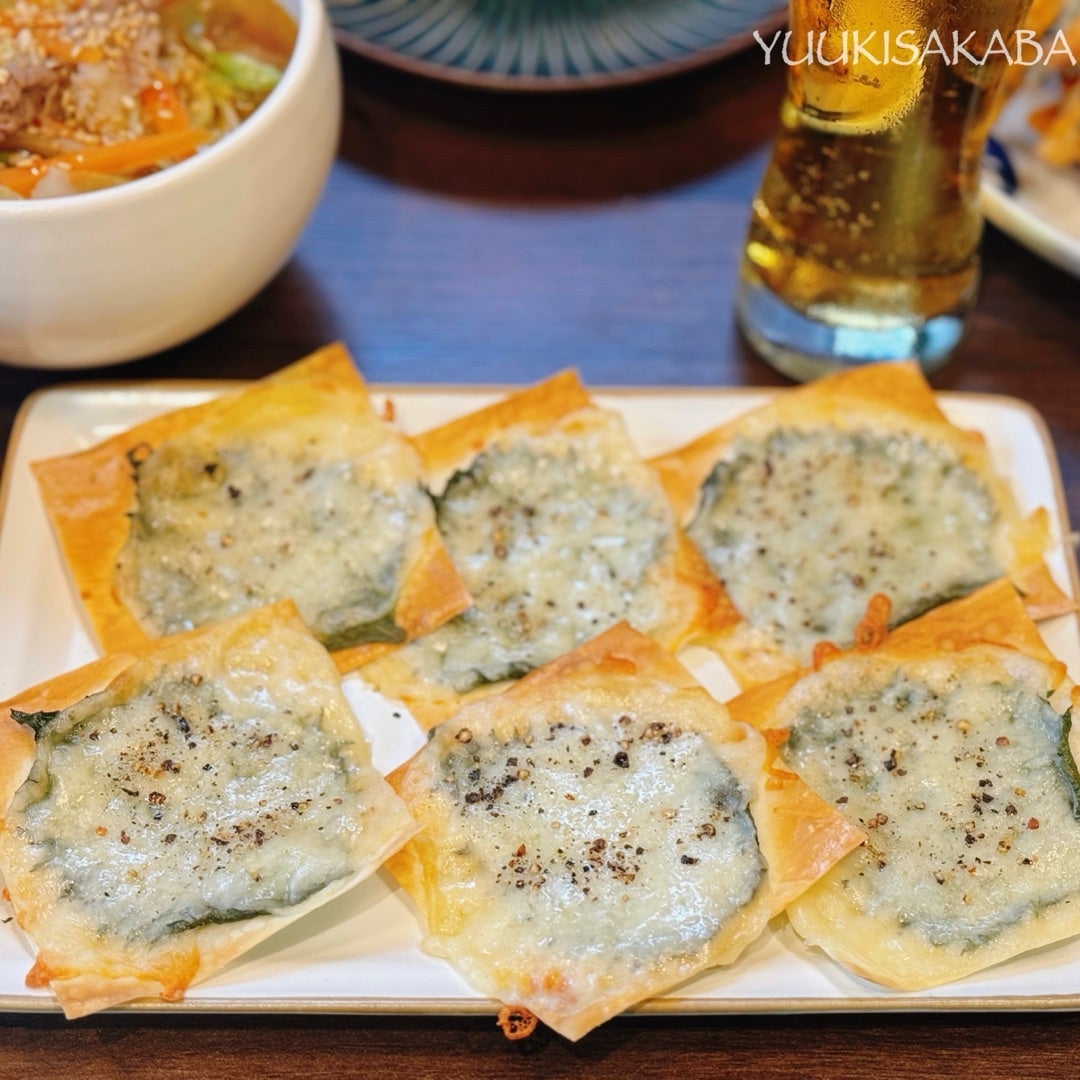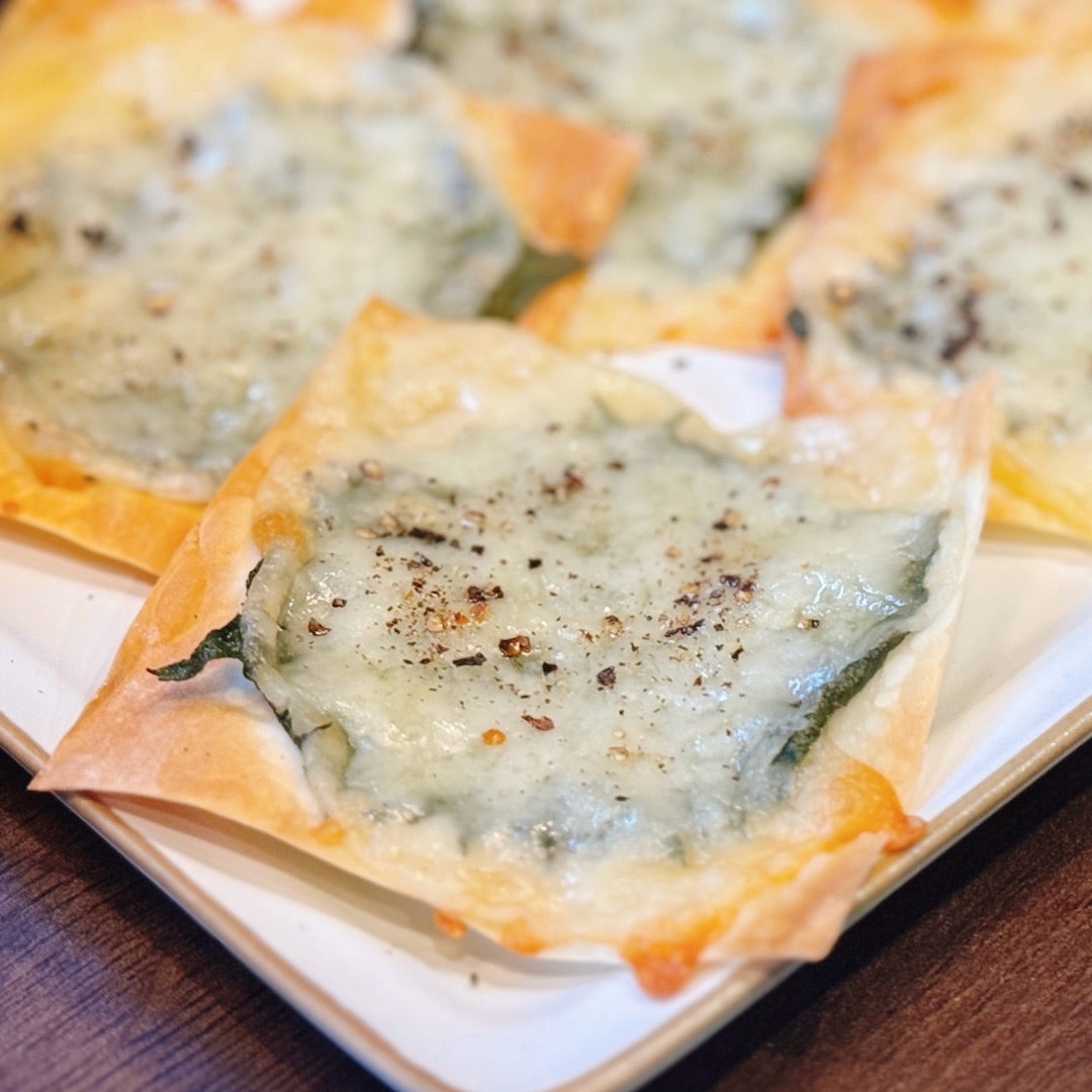 焼きチーズワンタン☆余りワンタンの皮で簡単おつまみ。