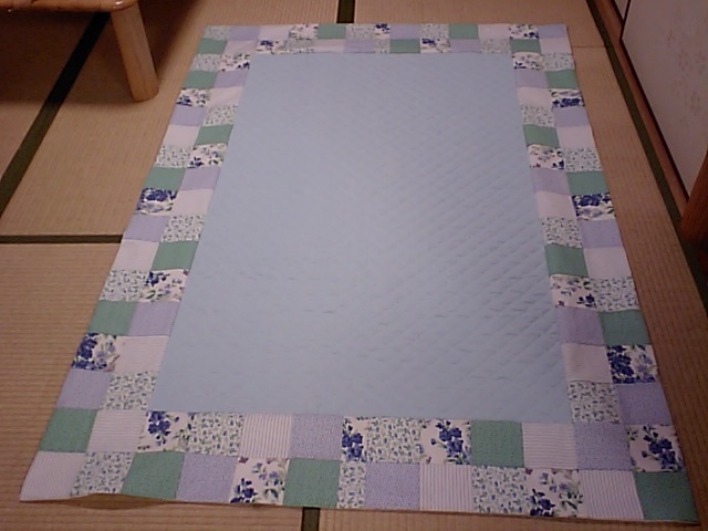 パッチワークキルト「ブルーのこたつカバー」の作り方ぬくもり。