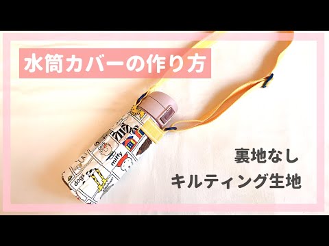 キルティング生地の水筒カバーの作り方 裏地なし 水筒に合わせて作れる型紙の作り方も紹介★。
