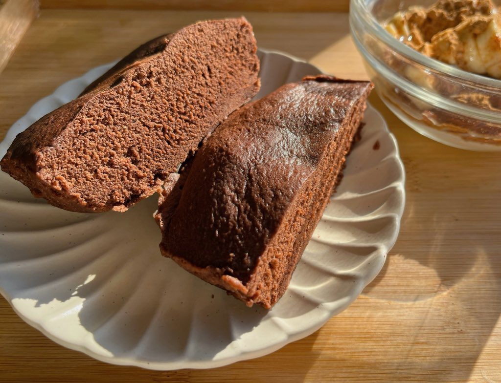トレーニング後に ふわふわプロテイン蒸しパン🤍🤎 👩🍳レシピ〰︎︎ ⭐︎プロテイン30g 私のは塩バニラフレーバー⭐︎米粉30g⭐︎ベーキングパウダー3g ⭐︎オオバコ2g あってもなくても可⭐︎純ココア10g ⭐︎水 適量もったりでもなくサラサラでもない。