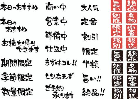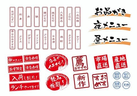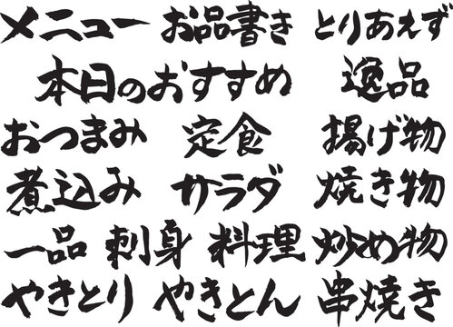 居酒屋メニュー☆文字セット☆料理おしながき:イラスト無料。
