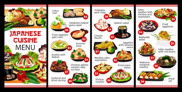 日本料理レストランフードメニューイラストデザインPremiumベクトル素材。