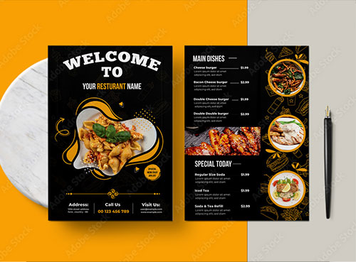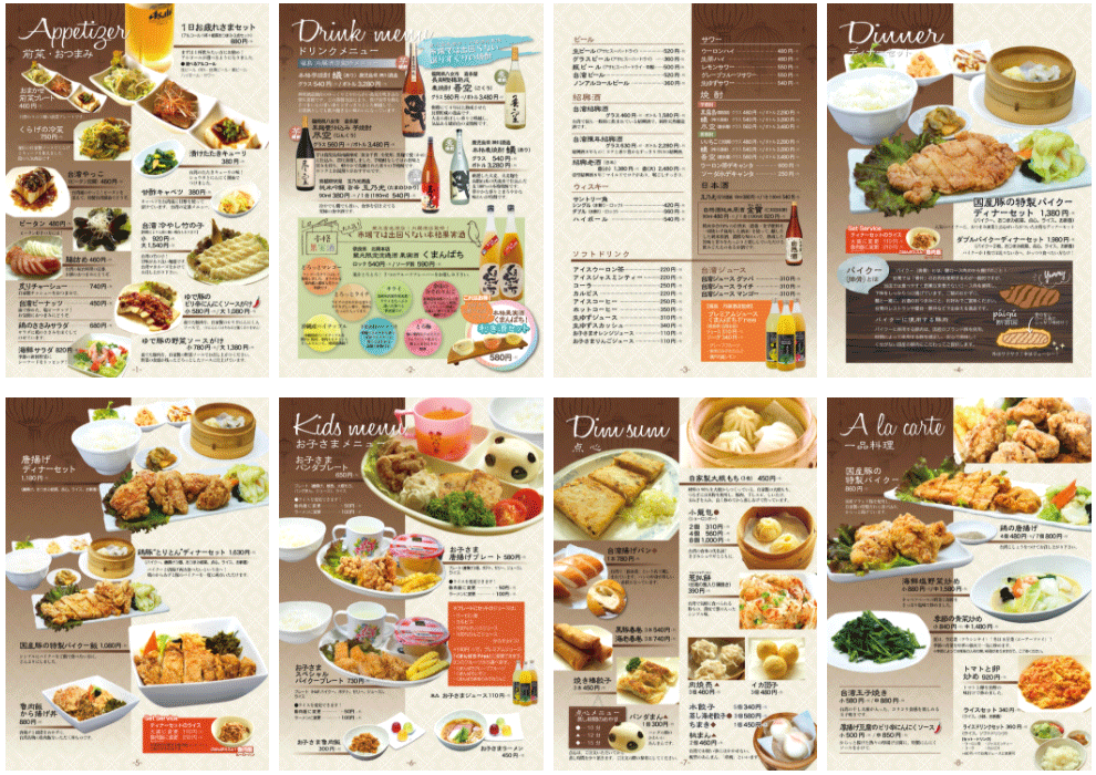 飲食店のメニュー表無料テンプレート・デザインサンプル - ネット印刷グラフィック。