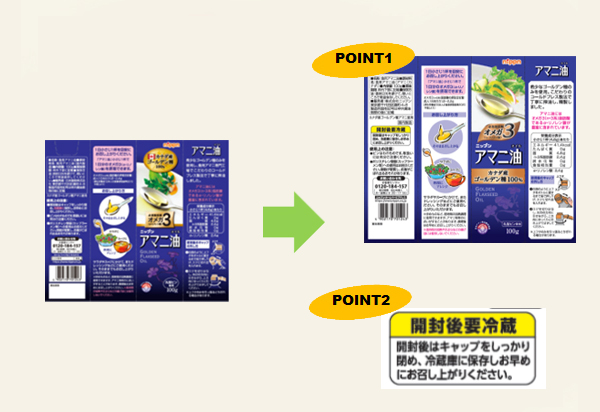 開封後の保存方法をパッケージに分かりやすく掲載しました。お問い合わせ窓口株式会社ニップン。
