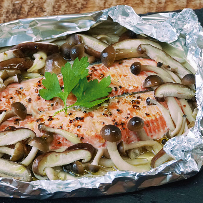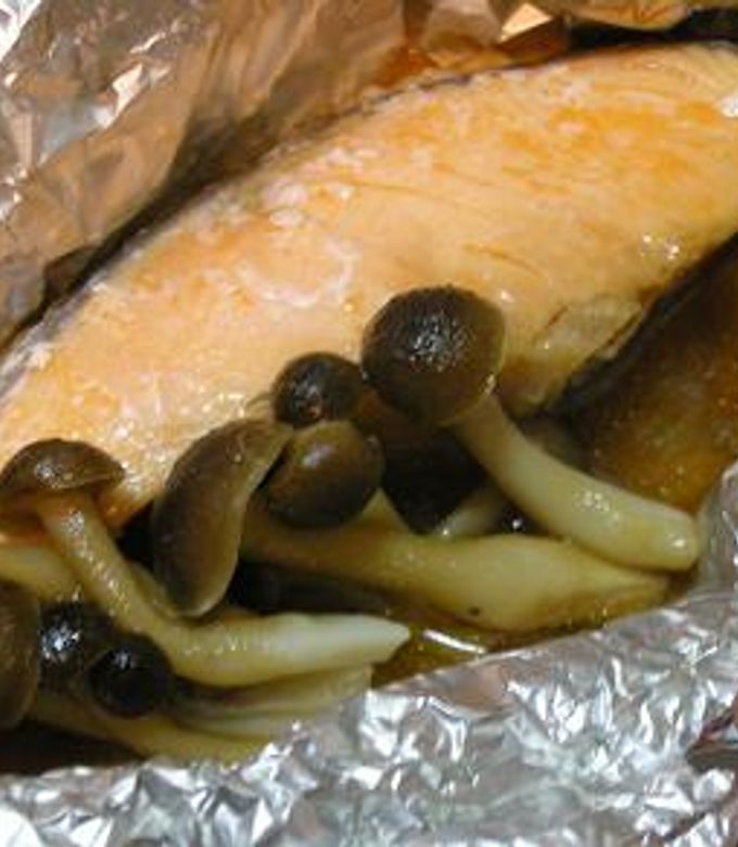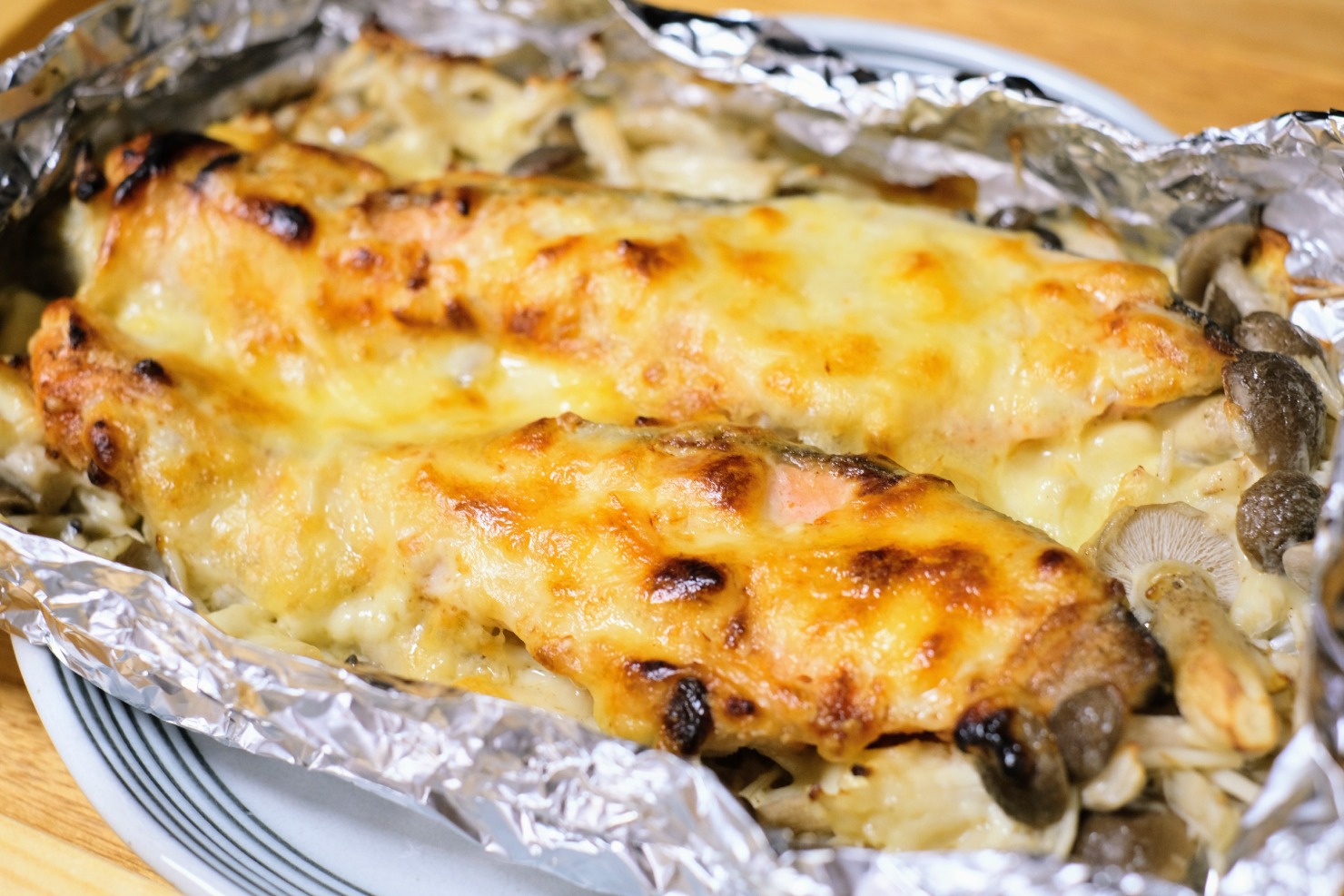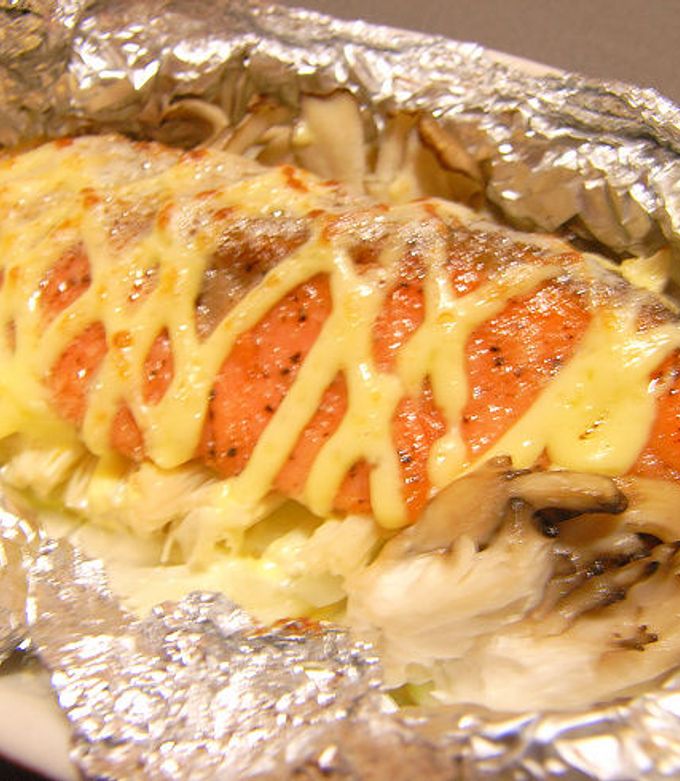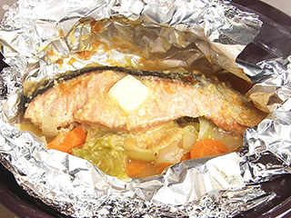 鮭ときのこのオニオン&ガーリックバターホイル焼き。