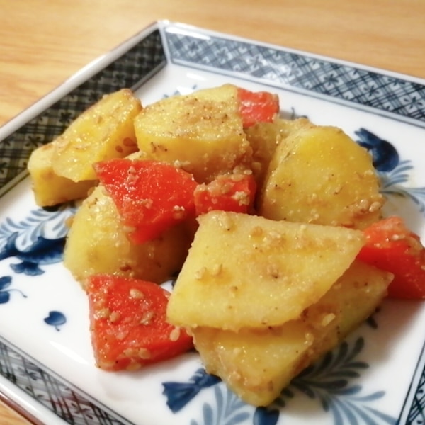 レンジで簡単 じゃがいもとにんじんのごまマヨサラダピリ辛メインにも合う、まろやか副菜AIレシピでつくる、かんたんごはん日記。