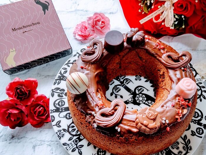 プロテイン入り♡モチーフをのせる楽しみにワクワク!バレンタインのドーナツショコラケーキ♪。