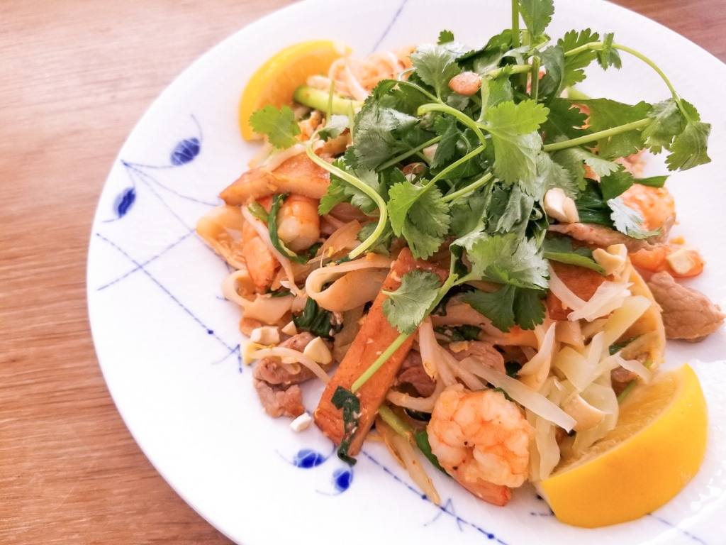 タイ料理にハマりたい! その6:4品目 パッタイクンソット タイのエビ入り焼きそば 。モチモチ食感の安心できる味♪ベランダ果樹園。