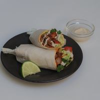 “スパイシーポークビーンズのブリトー〜アボカドとカシューナッツのサワークリーム〜”。