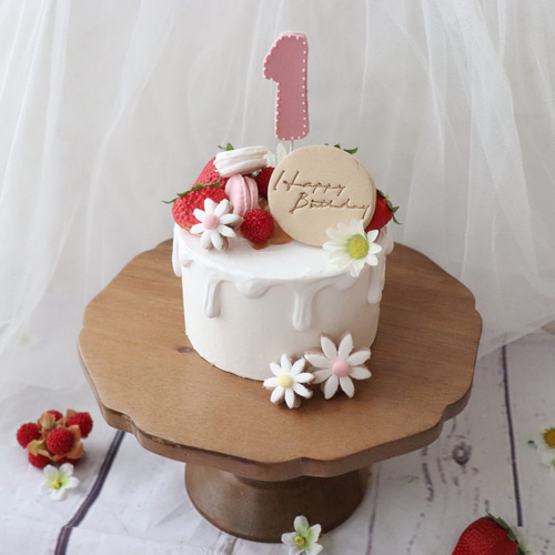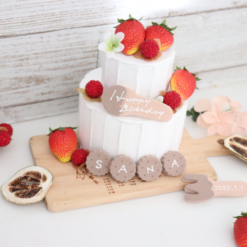 木苺といちごいっぱい可愛いお花のミニクレイケーキ♪バースデーケーキ♡1歳誕生日ケーキ 記念日 バレンタインオーダーページ 雑貨・その他 エレナ 通販18774959Creema クリーマ。
