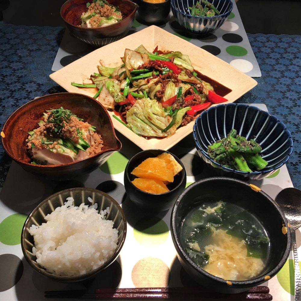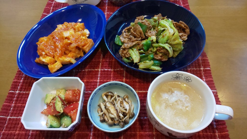昨日の晩ご飯は回鍋肉☆彡中華風献立一・日・半・歩。