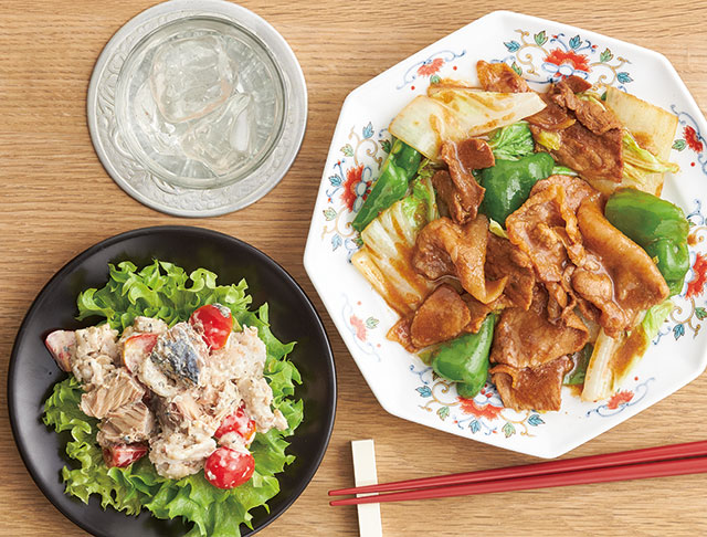 白菜で回鍋肉、さば缶でさといもマッシュサラダeフレンズ ぱくぱく献立くん。