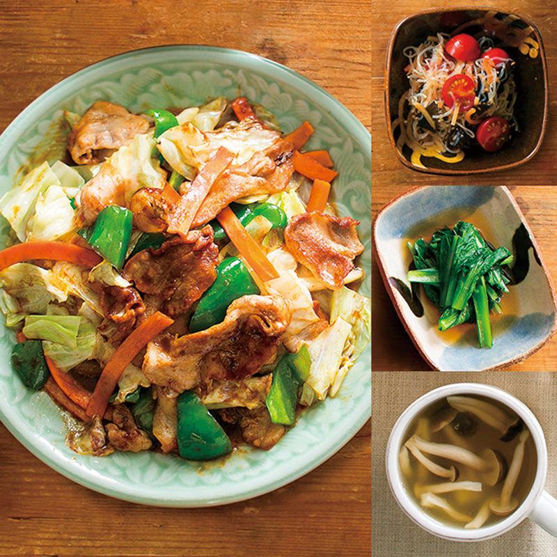中華の定番!回鍋肉の定食献立 副菜、スープの組み合わせ例料理スタイル。