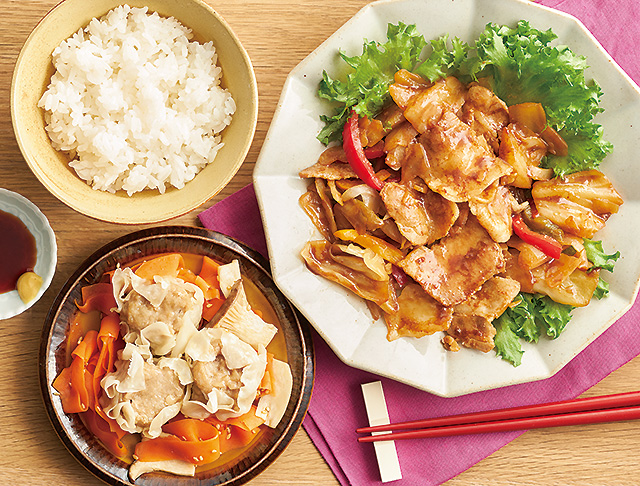 厚切り肉の回鍋肉の献立 副菜:やみつき!無限えのき、汁物:もやしとハムの簡単スープ 献立・メニュー 味の素パーク たべる楽しさを、もっと。