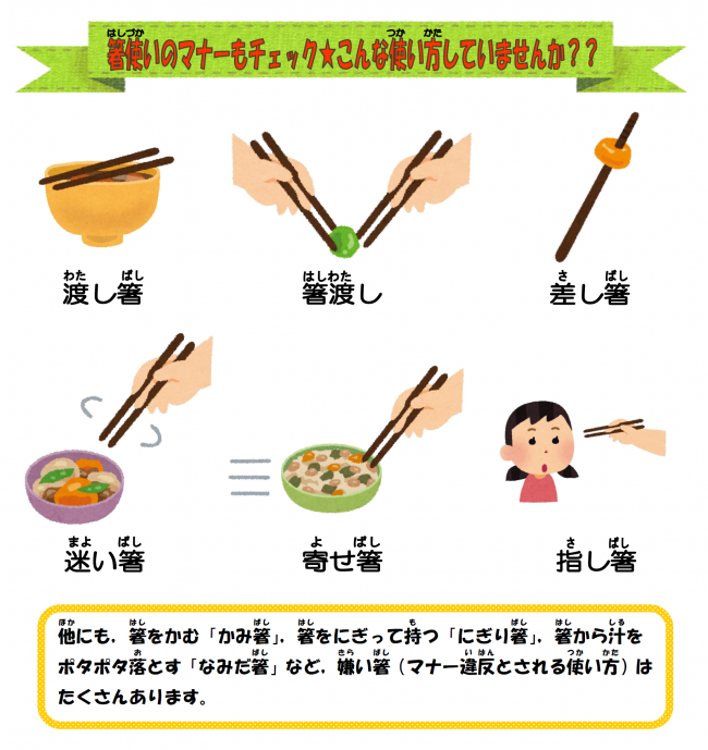 食事のマナーを再確認してみよう! ☆お箸編☆ - 笠岡市ホームページ。