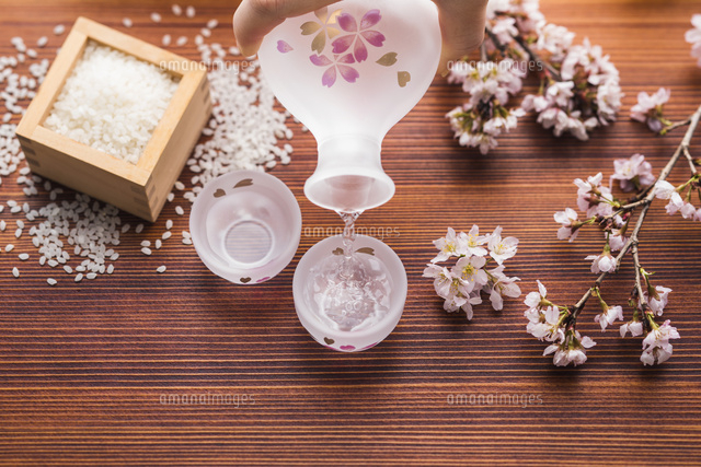 日本酒と桜 10909002057 の写真・イラスト素材アマナイメージズ。
