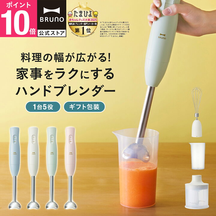 BRUNO 公式 マルチスティックブレンダー2+Baby ブルーノ BOE142 離乳食 1台5役 つぶす 混ぜる 刻む 砕く 泡立てる チョッパーホイッパー 電子レンジ対応 : BRUNOブルーノ公式ヤフーショッピング店 - 通販 - Yahoo!ショッピング。