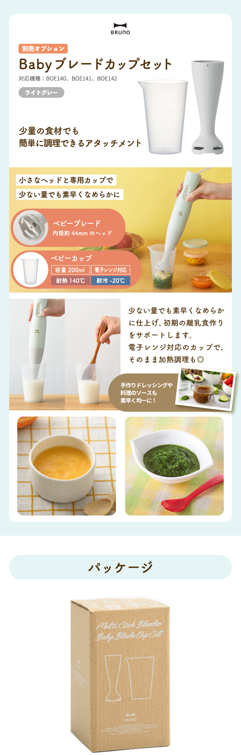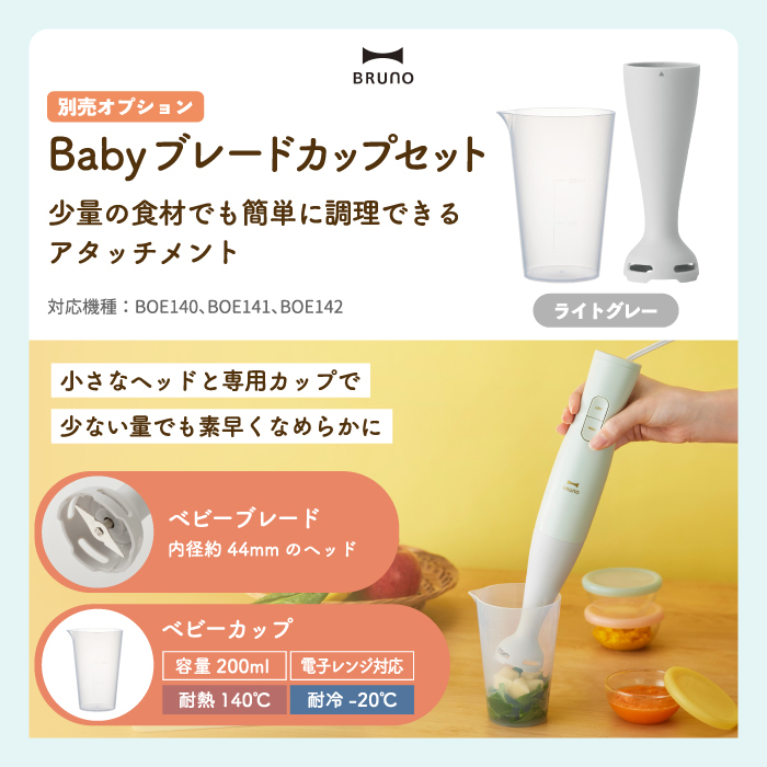 選べる特典付ブルーノ ハンドブレンダー オプションパーツ Babyブレードカップセット 計量カップ アタッチメント BRUNOマルチスティックブレンダー2 出産祝い 離乳食 介護食 時短 スープ ソース作り 便利 初心者向け 新生活 結婚祝い キッチン家電 ギフト -mecu。