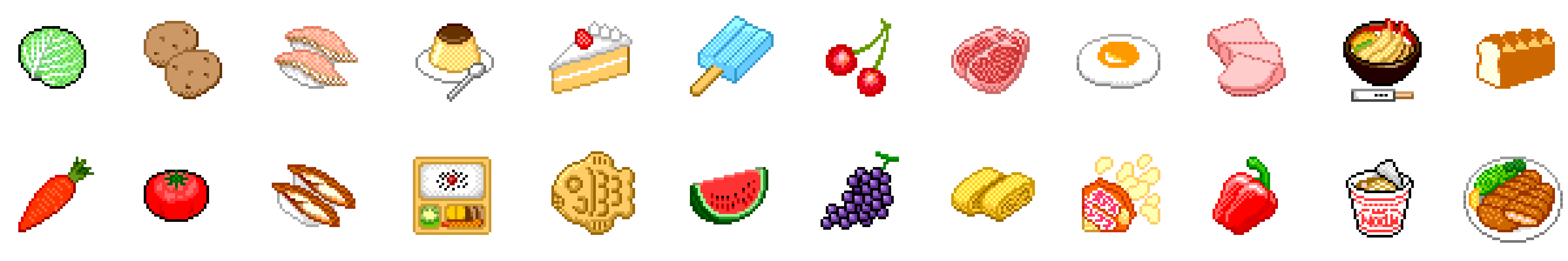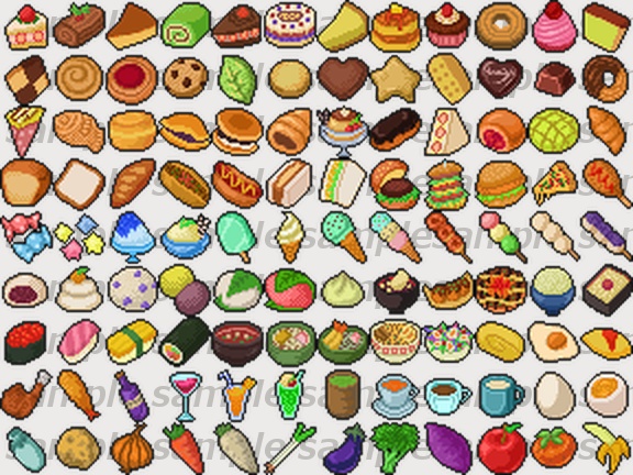 24×24ドット絵食べ物アイコンセット - つちのこ@ドット絵素材置き場 - BOOTH。