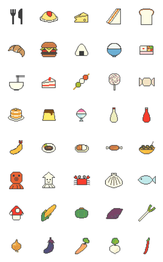 食べ物① ドット絵 ピクセルアートのLINE絵文字画像、情報など。