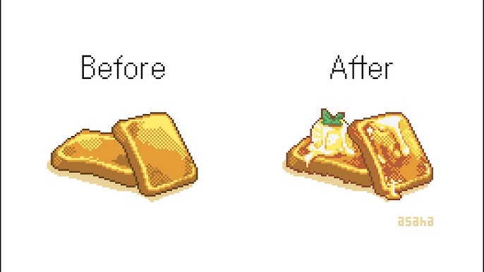 穣津ペグ🌅 on X: " 食べ物ドット絵初心者なので目玉焼きトースト描くpixelartドット絵https:t.co 6AmIPmLjKO"X。