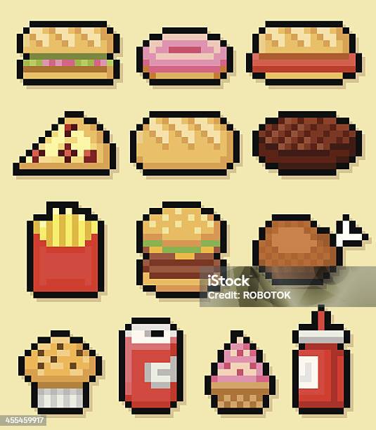 ピクセルアートスタイルで食品アイコンのセット - ドット絵のベクターアート素材や画像を多数ご用意 - ドット絵, 食べ物, アイコンセット -iStock。