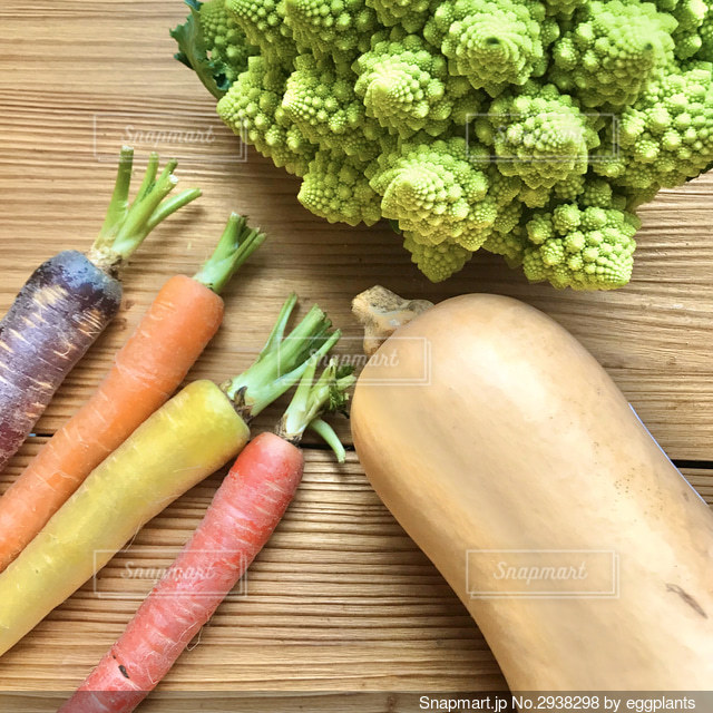 木のボードの上のおしゃれ野菜の写真・画像素材-Snapmart スナップマート。
