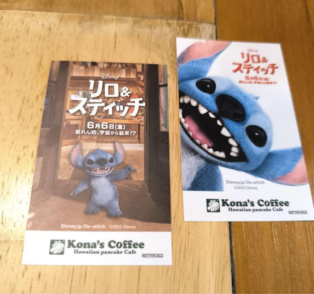 コナズ珈琲のリロ&スティッチキャンペーンと特製ステッカ。