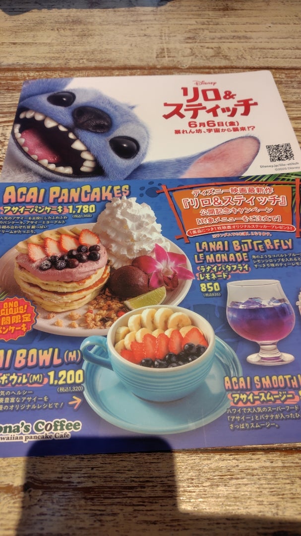 🚩 Kona's Coffee - Stitch Collaboration 今日は"コナズ珈琲"で開催のリロ&スティッチコラボレーションフードを食べてきました🙆♂️!! 店内はハワイの雰囲気がいっぱいで癒される。 スティッチが所々に隠れていて可愛かった!コラボメニューを注文するとステッカーが。