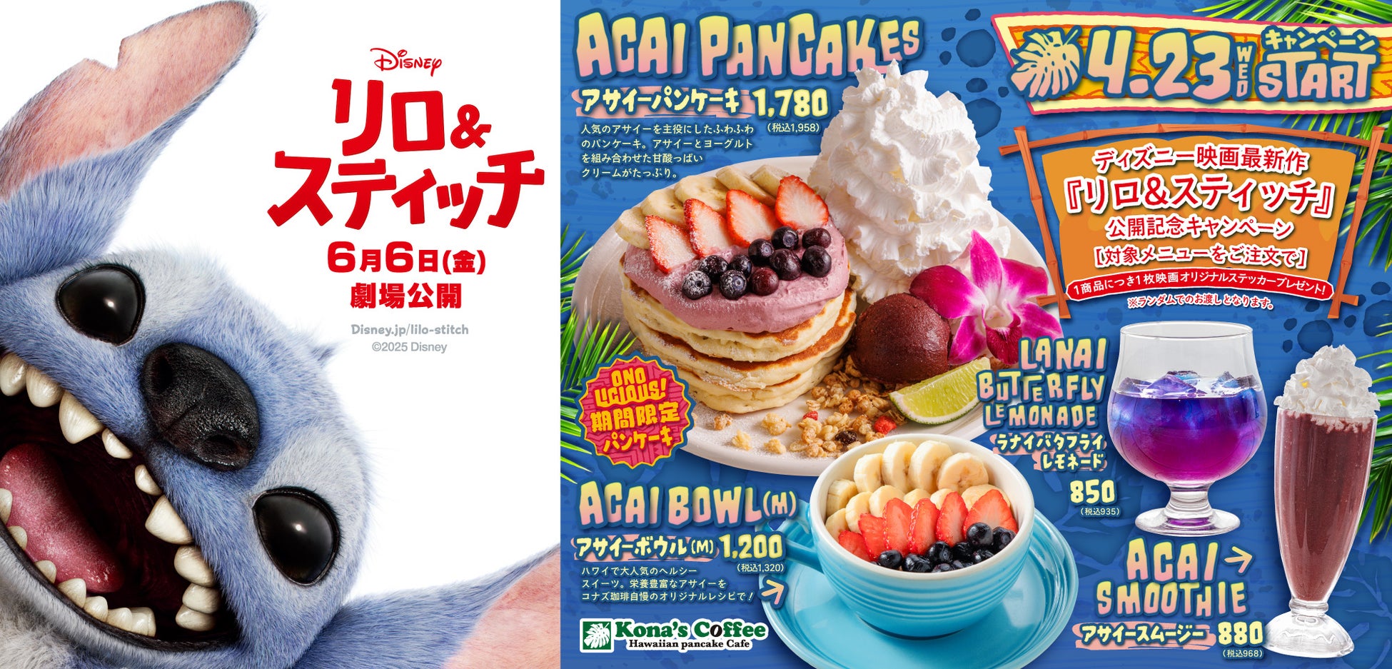 ハワイを舞台にしたディズニー映画最新作『リロ&スティッチ』公開を記念したキャンペーンを、全国のコナズ珈琲で展開!株式会社KONA'Sのプレスリリース。