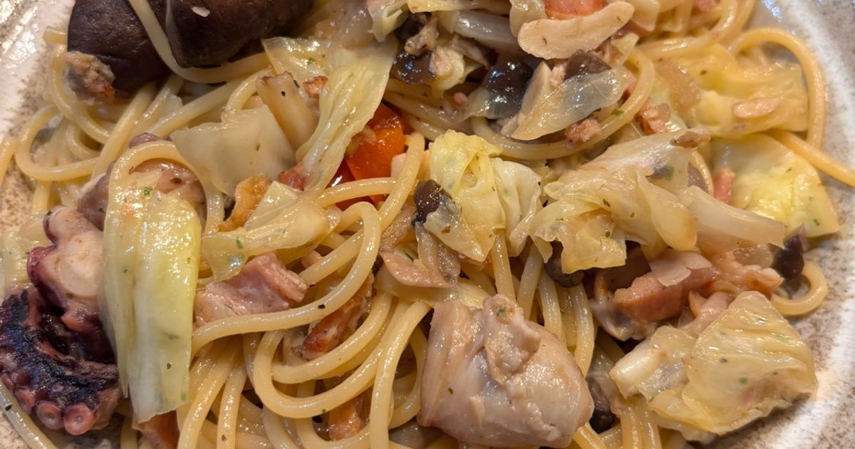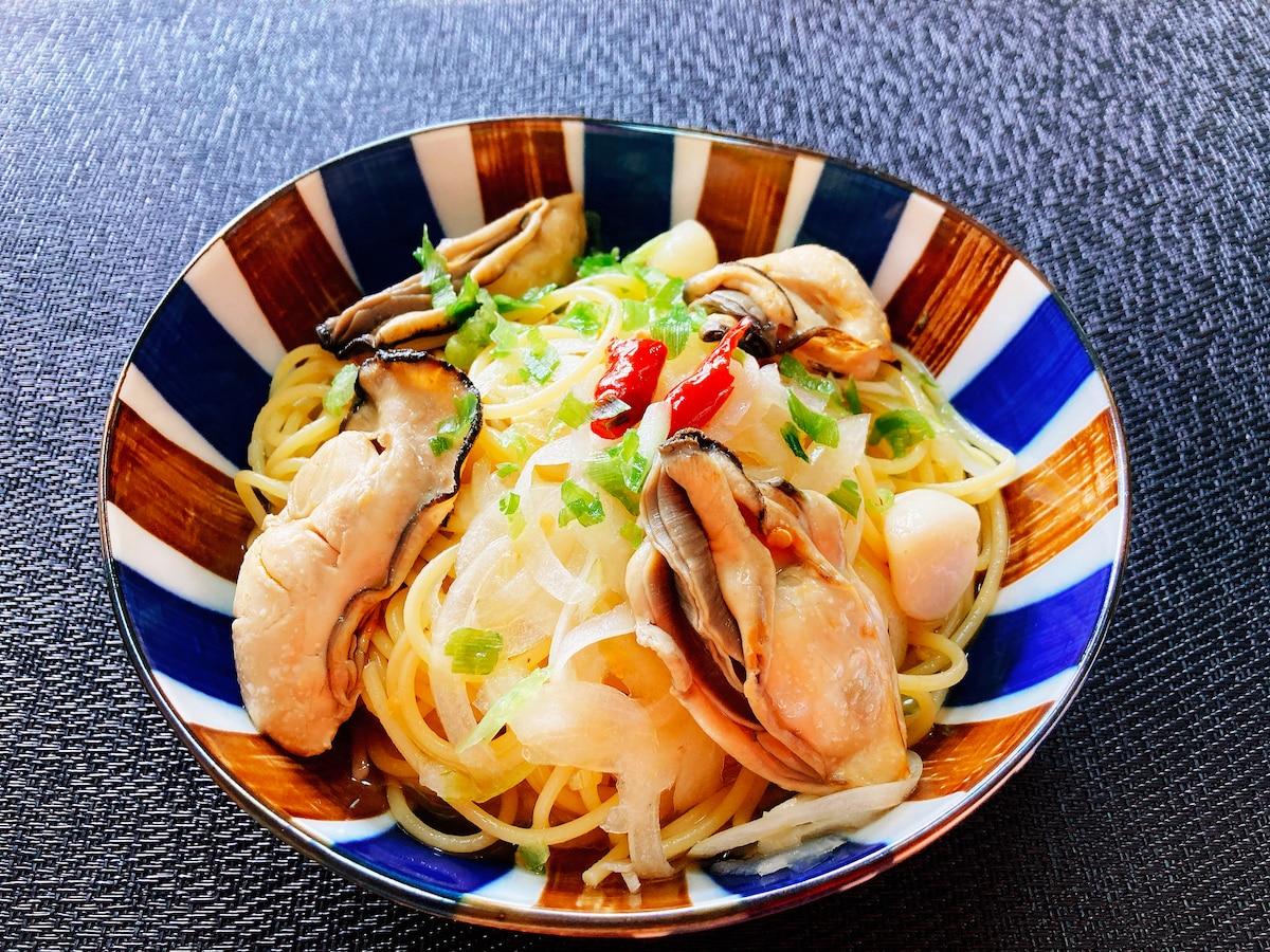 ペスカトーレ コストコのアヒージョで作ったパスタです Terumi YokosawaSnapdish スナップディッシュID:Pun9Ga。