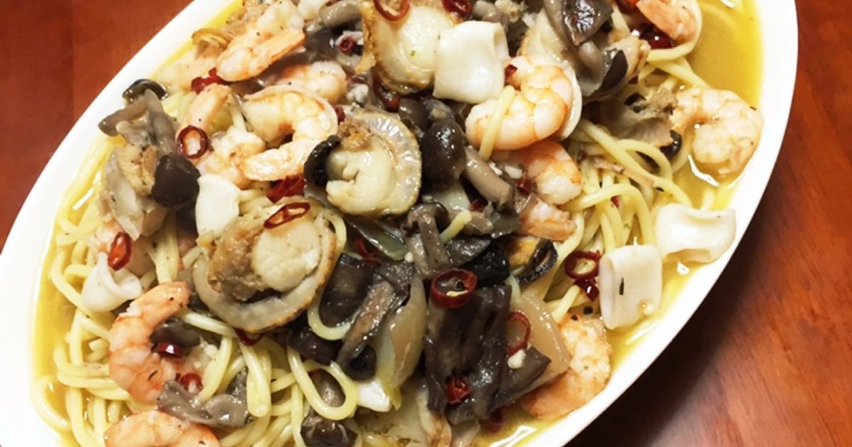 コストコアレンジレシピ!シーフードアヒージョパスタ作ったら。