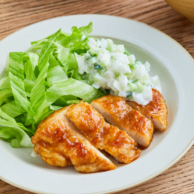 揚げないチキン南蛮。 むね肉でやわらかヘルシー!タルタルソースに隠し味も。